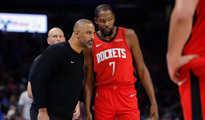 火箭队将在主场迎战篮网。最近火箭队开局状况不佳,在接连输给雷霆和活塞之后,遭遇一波两连败。缺少控球后卫的弊端在比赛当中暴露无遗。虽然乌度卡始终固执,但是进攻端空间被严重压缩,无人组织,球队混乱。同时阿门·汤普森在承担过多的组织任务之后,自己的防守和进攻效率也是大打折扣。今日火箭队面对篮网肯定想拒绝3连败,火箭果断变阵,乌度卡将奥科吉放入首发,亚当斯被拿出首发。至此,火箭队首发五虎是阿门·汤姆森、奥科吉、杜兰特、贾巴里·史密斯和申京,以此来迎战篮网,效果很好。